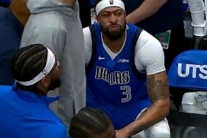 看起來挺疼!濃眉釘板大帽米切爾時戳到手指 暫停時表情痛苦