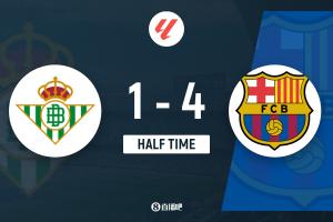 體育資訊12月7日訊 北京時間1:30,西甲第15輪皇家貝蒂斯vs巴塞羅那,比賽在塞維利亞奧林匹克體育場打響!上半場,安東尼破門幫助貝蒂斯取得領(lǐng)先,但隨后費蘭·托雷斯2分鐘2球?qū)⒈确址闯∨宓吕镏グ偷录傧乱怀?;費蘭遠射破門完成帽子戲法!半場結(jié)束,巴薩暫時4-1領(lǐng)先貝蒂斯。