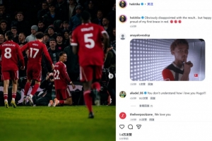他也在賽后通過社媒曬出自己的滑跪慶祝照,并配文:“顯然對(duì)結(jié)果感到失望,但也為我在利物浦的首次雙響感到高興和自豪。”