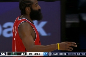 聽牌歷史前十!哈登急?;物w防守中投命中 半場(chǎng)砍19分&僅差1分