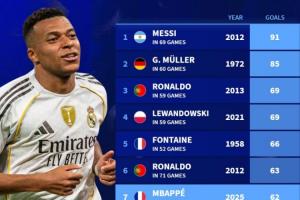 體育資訊12月08日訊姆巴佩今年進球已達62球,進入歷史前十,德轉(zhuǎn)盤點了足壇歷史自然年進球紀錄。