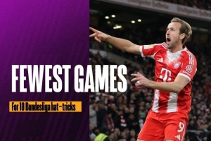 據(jù)Opta統(tǒng)計,凱恩出戰(zhàn)76場德甲比賽,10次上演帽子戲法,他是德甲歷史10次戴帽所用場次最少的球員,只有4名球員德甲戴帽次數(shù)更多,他們是蓋德·穆勒、萊萬、馬里奧·戈麥斯和克勞斯·費舍爾。