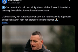 布魯日官方寫道:“布魯日俱樂部宣布尼基·海恩卸任主教練一職,伊萬·萊科將接替他擔(dān)任主教練?!?/p>