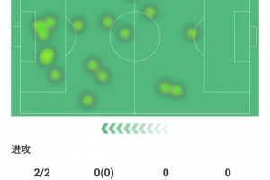 射門2次射正2次,丟失球權(quán)4次,預(yù)期進球0.38球