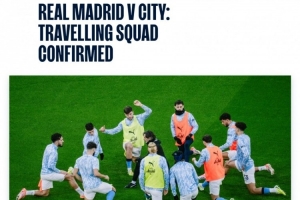 曼城歐冠客戰(zhàn)皇馬大名單: