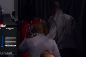 望無大礙!卡森·華萊士與馬威相撞有些受傷 故意犯規(guī)后回更衣室
