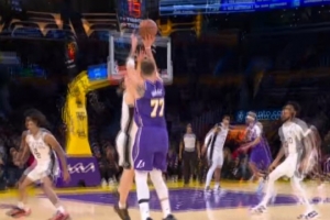 擋不??!東契奇胯下接撤步 迎著奧利尼克直接干拔三分再進!