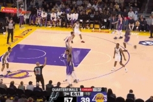 GIF-斯瑪特三分不中,和尚帕尼雙雙倒地