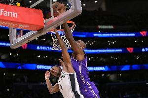 湖人防守頻頻犯規(guī)送馬刺上罰球線,不犯規(guī)這個(gè)后場(chǎng)防守真沒法玩,尤其在防突破上極度吃力。??怂?、卡斯?fàn)?、哈珀、凱爾登、瓦塞爾五個(gè)人的持球沖擊力打穿了湖人防線,強(qiáng)點(diǎn)突刺結(jié)合弱側(cè)三分雨,馬刺不到三節(jié)就建立起20分以上領(lǐng)先優(yōu)勢(shì)。
