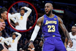 湖人球迷:大布朗尼·詹姆斯的暴扣表演。