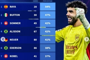 體育資訊12月11日訊 德轉(zhuǎn)盤點了近10年歐冠門將零封場次占比排行榜(至少25次出場),其中拉亞54%的比賽能夠零封居首,具體如下(比賽場次+零封比例):