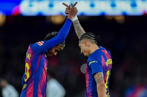 體育資訊12月14日訊 西甲第16輪,巴薩2-0奧薩蘇納,本場(chǎng)拉菲尼亞梅開(kāi)二度包攬球隊(duì)的全部進(jìn)球,還打入一粒精彩遠(yuǎn)射。