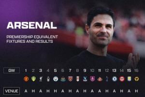 英超戰(zhàn)至第16輪,阿森納2分領(lǐng)跑英超積分榜,有媒體對比了阿森納本賽季前16輪比賽,與上賽季相同賽程的16場比賽的戰(zhàn)績。
