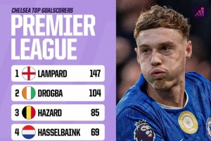 體育資訊12月15日訊 英超第16輪比賽,帕爾默復(fù)出破門,幫助切爾西主場(chǎng)2-0擊敗埃弗頓。帕爾默為切爾西攻入39粒英超進(jìn)球,排名切爾西隊(duì)史英超射手榜第9位。