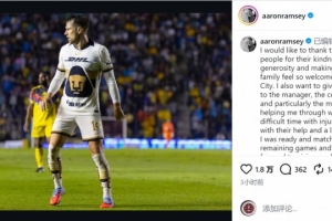 墨西哥美洲獅與拉姆塞解約,拉姆塞社媒寫道:“我想感謝墨西哥人民對我的友善與慷慨,讓我和我的家人在墨西哥城感受到如此溫暖的歡迎。我還要特別感謝主教練、教練組,尤其是醫(yī)療團隊,在我受傷的艱難時期給予我的幫助。在他們的支持和努力下,我恢復了狀態(tài),為接下來的比賽做好了準備,期待為美洲獅貢獻自己的最好表現(xiàn)?!?/p>
