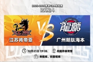 12月21日19:35,2025-26賽季CBA常規(guī)賽第四輪,江蘇肯帝亞將繼續(xù)坐鎮(zhèn)主場(chǎng)丹陽(yáng)市體育館迎戰(zhàn)廣州朗肽海本。