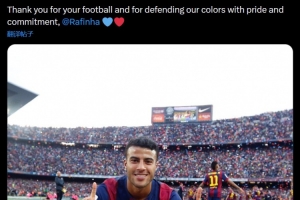 巴薩官方寫道:“感謝你帶來(lái)的足球,以及感謝你以驕傲和責(zé)任心捍衛(wèi)我們的顏色,拉菲尼亞????”