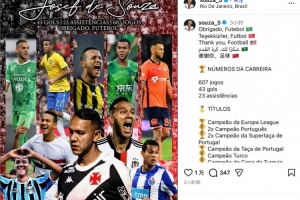 體育資訊12月31日訊 今日,前國(guó)安外援德索薩更新社媒,正式宣布退役。他用葡語(yǔ)、英語(yǔ)、中文等五種語(yǔ)言向足球致謝。