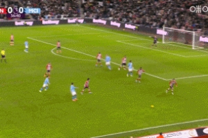福登右路傳中,哈蘭德近距離射門被守門員撲出