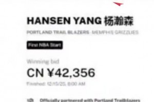 中國球迷多次競拍楊瀚森NBA首發(fā)戰(zhàn)袍拍出42356元高價