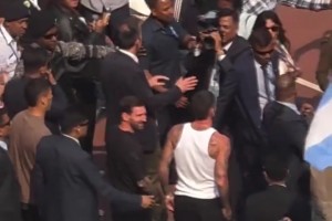 今天真得當好保鏢!梅西下車后德保羅就跟在一旁