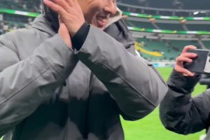 面對(duì)工體“電梯戰(zhàn)神”的呼喊聲,王剛向國(guó)安球迷微笑送上掌聲