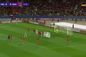 阿根廷門將出擊放倒對手VAR判罰任意球!摩洛哥任意球直接破門!