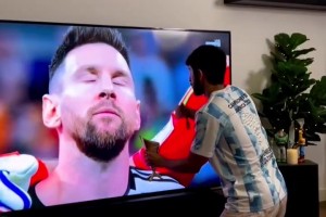 這就是足球的美妙吧!皮球在空中劃出一道漂亮的弧線!