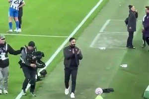 終于笑嘻嘻啦!賽后阿莫林握拳與球迷互動(dòng),贏球很開(kāi)心!!