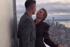 萊萬與妻子在紐約帝國大廈,參加波蘭獨立日慶祝活動