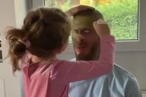 德赫亞女兒為老爹畫了個(gè)美美的綠綠妝~是真寵女兒呀~