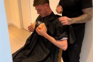 你小子!帕爾默很享受理發(fā)師的惡搞